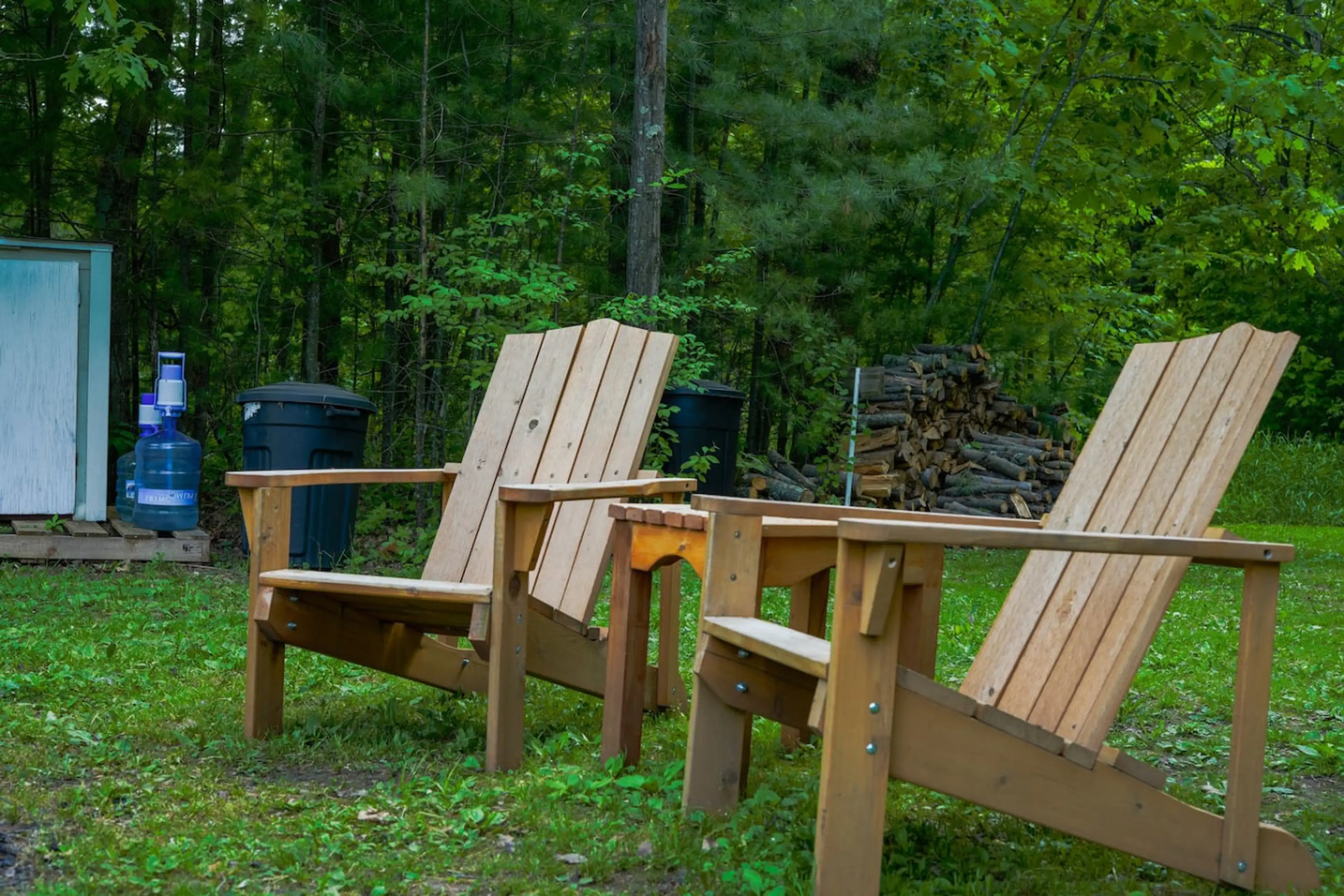 A unique getaway at our Singing Frog Tiny home ( one of four spaces on 8 gorgeous acres at the Wooded Retreat) This charming semi-off grid tiny Home with private outdoor bathroom/Solar shower, private road and parking at site, wraparound deck, picnic table, grill, full kitchen with water, sink, king...